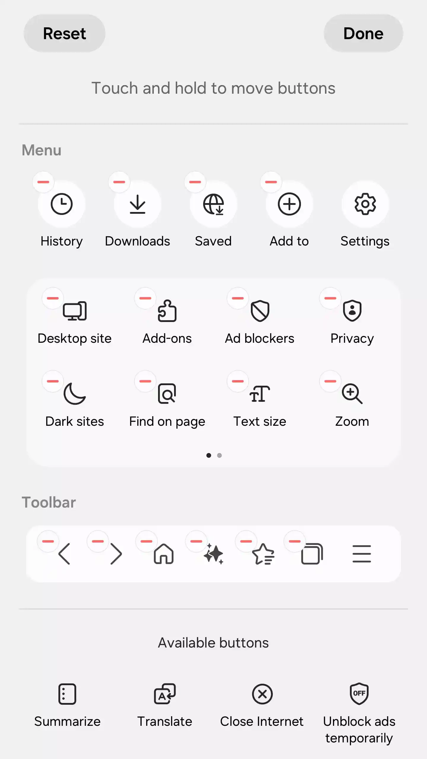 استمتع بتجربة قراءة هادئة وخالية من المشتتات بفضل وضع القراءة المدمج، الذي يُزيل العناصر غير المرغوب فيها من مقالاتك المفضلة بكفاءة عالية. يُعد هذا الوضع الحل الأمثل لمستخدمي قلم S Pen لنسخ محتوى الويب ومشاركته مباشرةً، حيث يُسهّل مشاركة مقتطفات أو صفحات كاملة. كما يمكنك حفظ الصفحات لقراءتها لاحقًا دون اتصال بالإنترنت.
